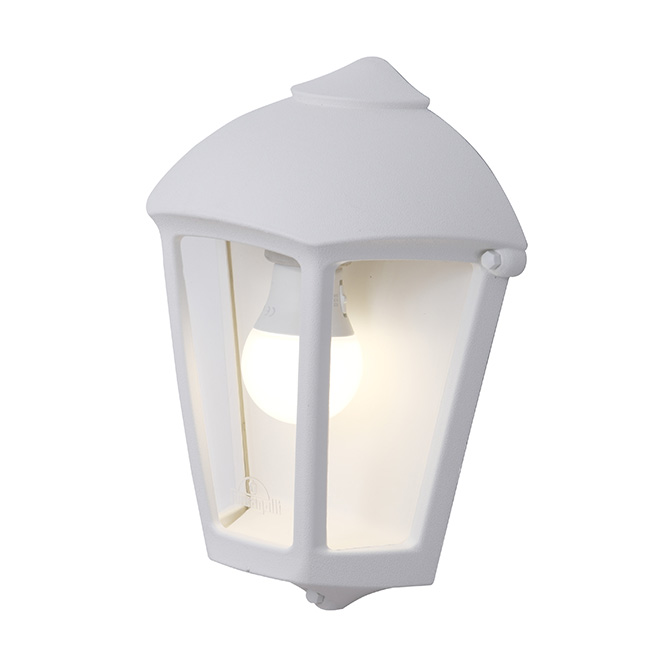 Dentro da secção Exterior, apresentamos o aplique estanque FABIO. As medidas deste modelo de aplique são de 21 cm de comprimento, 11,5 cm de largura, 29 cm de altura, em resina branca e difusor transparente em PMMA (IP55). Este modelo fica completo com 1 lâmpada E27. Destaca-se pelo selo de qualidade da prestigiada marca italiana Fumagalli.
