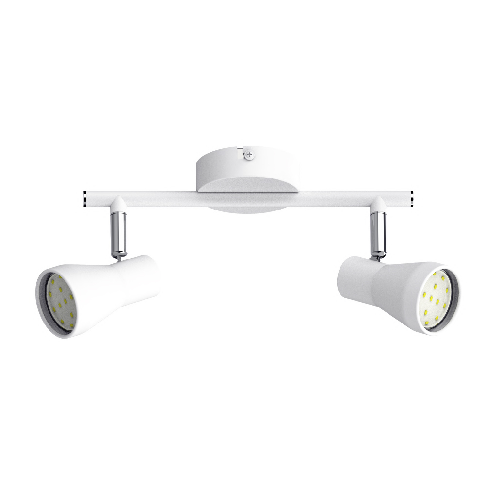 Dentro da secção Candeeiros com Focos, apresentamos o artigo aplique LEONEL. As medidas deste modelo de aplique com 2 focos orientáveis são de 25 cm de comprimento, 9 cm de largura, 12,5 cm de altura, em branco. Este modelo fica completo com 2 lâmpadas GU10 (não incluídas).