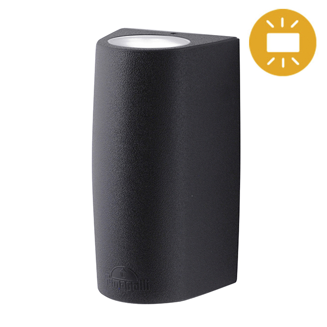 Aplique MARTA 2xGX53 6W botão CCT (3cores) IP55 C.9,2xL.8xAlt.17cm resina preta