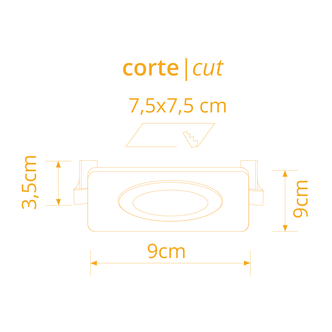 Na secção Técnico, destacamos o aro de embutir ONIRO ABS, fabricado integralmente em ABS, com design quadrado de 9 cm de comprimento, 9 cm de largura, 3,5 cm de altura, em branco e equipado com aro interior rotativo. O seu formato compacto combina minimalismo com um toque de sofisticação discreta, oferecendo uma presença subtil e elegante ideal para ambientes modernos. Compatível exclusivamente com lâmpadas LED. Vendido em caixas de 2 unidades