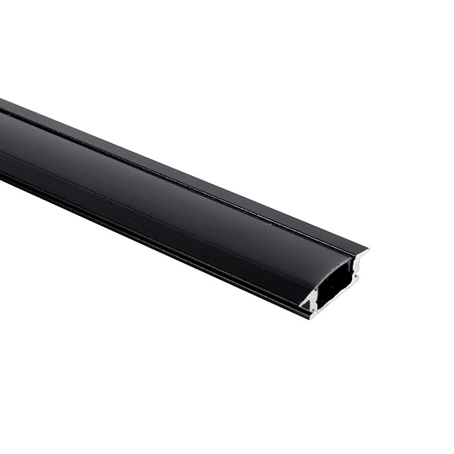 Calha com abas para fita LED preto com difusor preto (para embutir) L.24,7x Alt.7mm