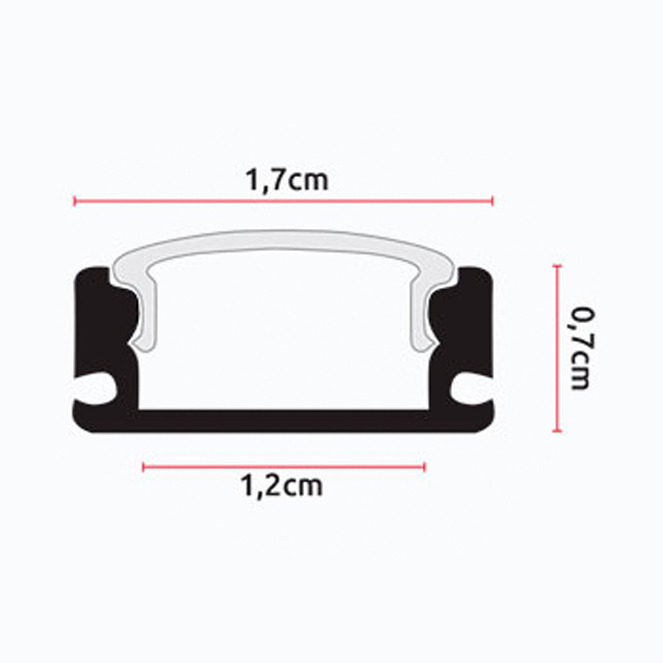 Calha sem abas para fita LED com difusor opalino L.17,4x Alt.7mm