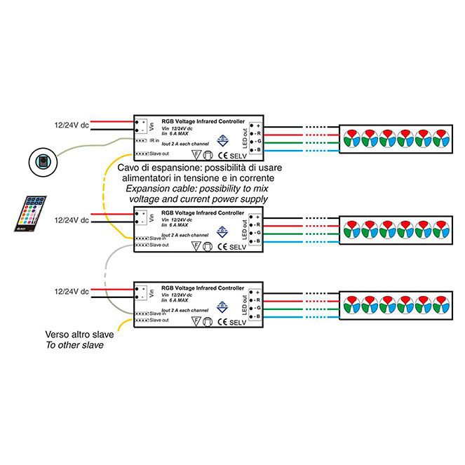 Controlador LED RGB de tensão constante regulável IR branco (slave)