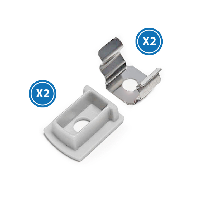 Pack de 2 topos e 2 grampos para perfil LM3747