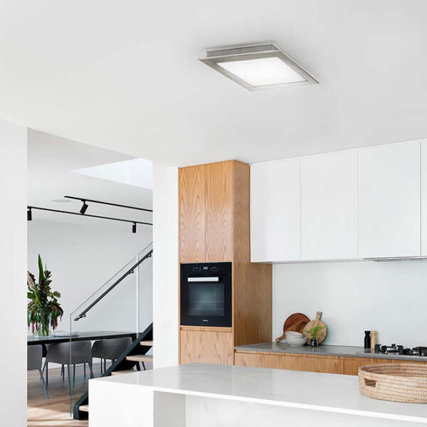 Dentro da secção Candeeiros Diversos, apresentamos o artigo plafond CALABOR. As medidas deste modelo de plafond são de 27 cm de comprimento, 27 cm de largura, 8 cm de altura, em níquel. A temperatura de luz de 4000K (luz branca neutra) é a mais adequada para comércio ou escritórios. No caso das habitações poderá ser utilizada em todos os espaços com destaque para as cozinhas, escritórios e similares. Este modelo contém módulo LED de 48W.