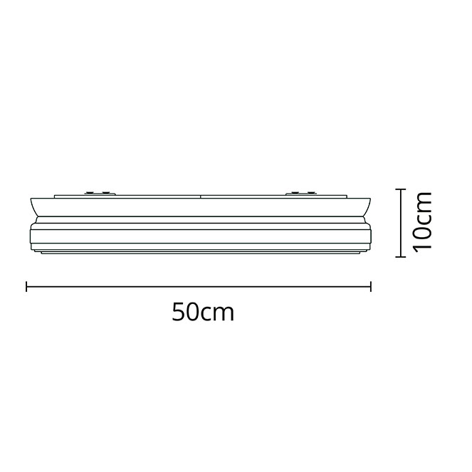 As medidas deste modelo de plafond são de 10 cm de altura, 50 cm de diâmetro, em preto.