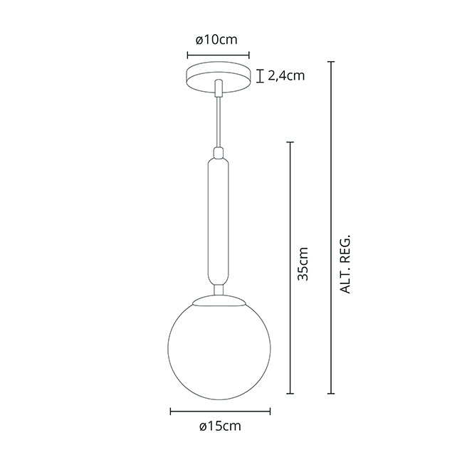 Dentro da secção Candeeiros Diversos, apresentamos o artigo suspensão AIMEE. As medidas deste modelo de suspensão são de altura regulável, 15 cm de diâmetro, em preto. Este modelo fica completo com 1 lâmpada E27.