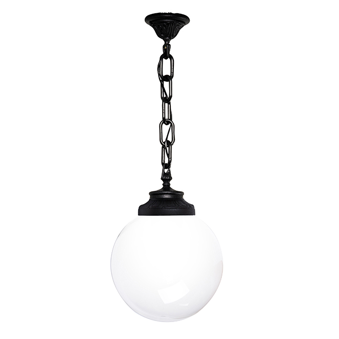 Dentro da secção Exterior, apresentamos a suspensão estanque GLOBE. As medidas deste modelo de pilar são de 70 cm de altura e 25 cm de diâmetro, em resina preta e difusor opalino em PMMA (IP55). Este modelo fica completo com 1 lâmpada E27. Destaca-se pelo selo de qualidade da prestigiada marca italiana Fumagalli.